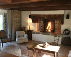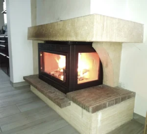 Poêle à bois dans une cheminée en pierre : Un hiver confortable et écologique