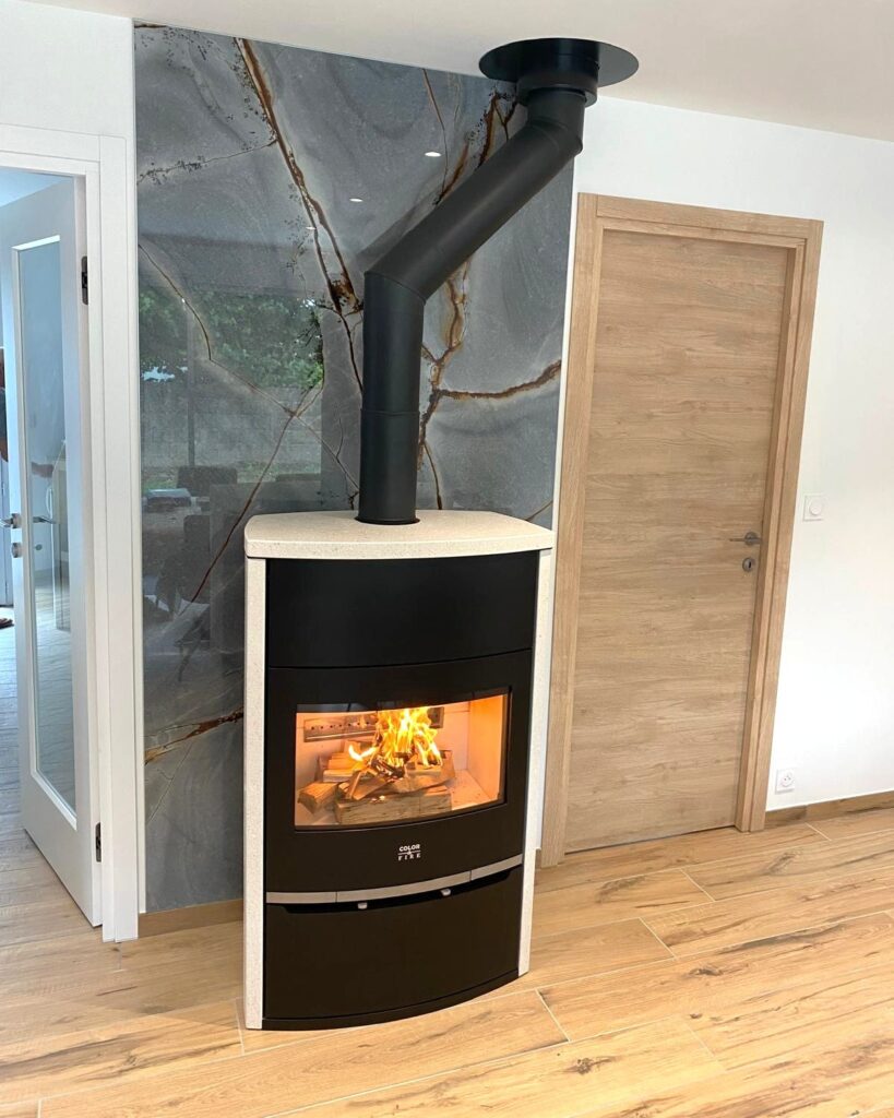 Le respect des normes de sécurité est impératif. Il faut s’assurer que la distance règlementaire entre le poêle et les matériaux combustibles est respectée. Le fabricant de votre appareil précise généralement ces distances dans le manuel de l’utilisateur. Nous avons déjà constaté des départs de feu causés par des installations non conformes, malgré l’utilisation de cloisons théoriquement résistantes au feu. Pour éviter de tels incidents, il est essentiel d’utiliser des matériaux incombustibles et de respecter soigneusement les recommandations du fabricant.